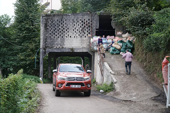 Doğu Karadeniz’in eğimli ve zor coğrafyasında insanların yapılaşmaya karşı bulduğu sıra dışı çözümlere bir yenisi daha eklendi. Pazar ilçesine bağlı Tütüncüler köyünde, hasat edilen çayların alım yeri yapımı için çalışma başlatıldı. Ancak köylüler, yeterli arazi bulunamayınca alım yerini yolun üzerine inşa edilmesine karar verdi.